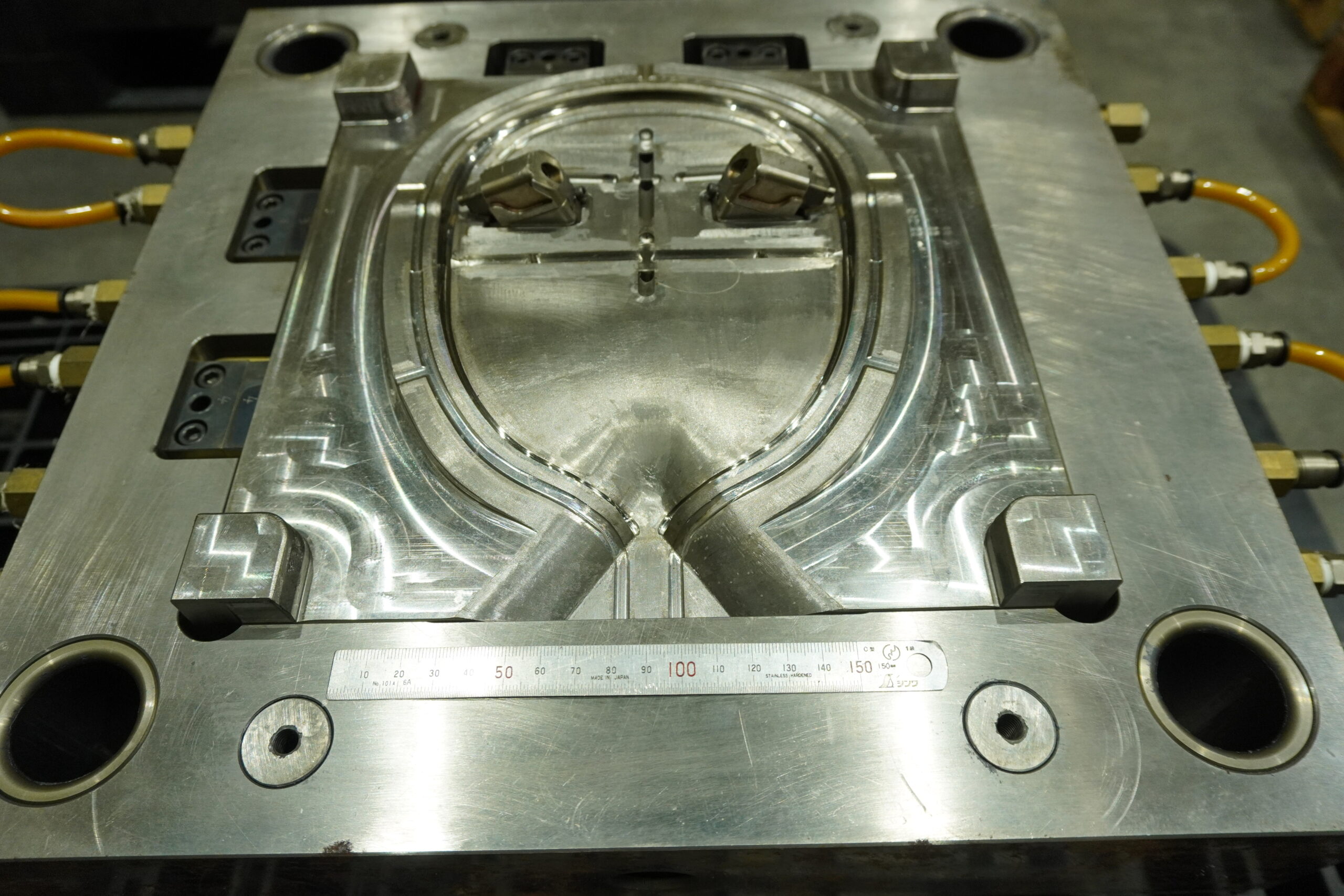 こちらは、フェイスシールドフレーム用の射出成形金型です。